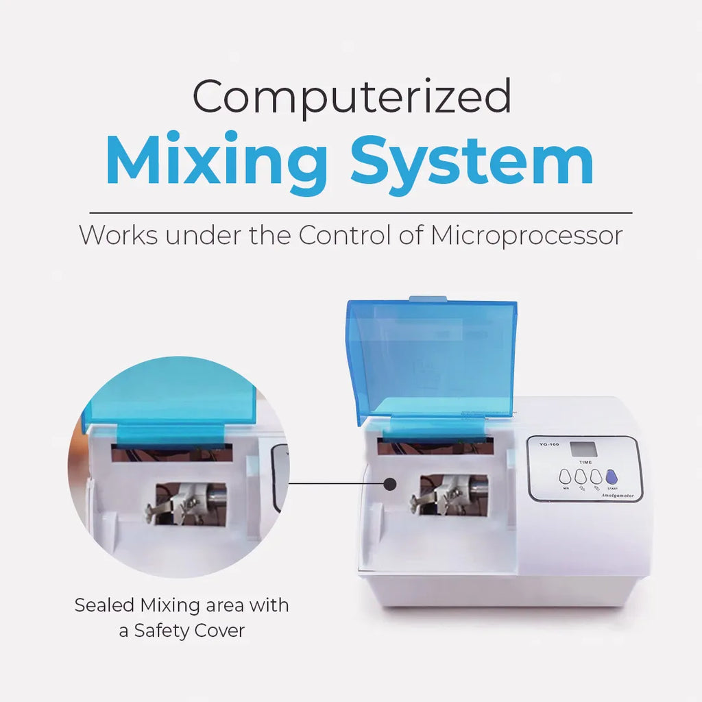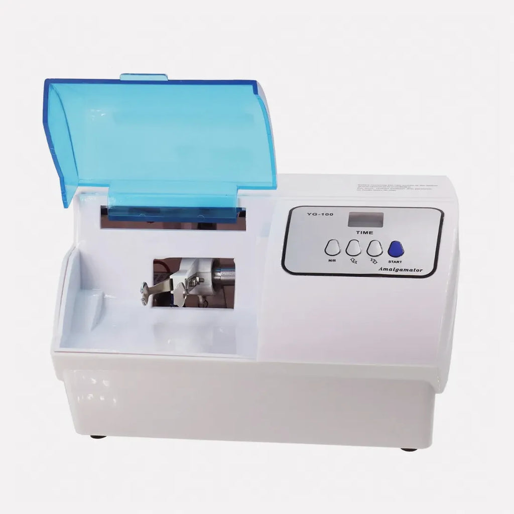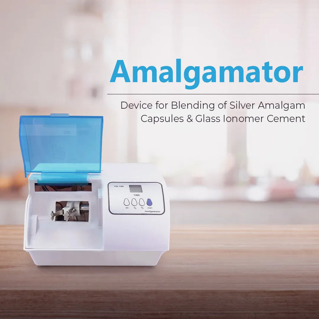 A dental amalgamator is used in the field of dentistry for the blending of restorative materials such as silver amalgam capsules and glass ionomer cement. This ensures a precise, controlled, and consistent mix.