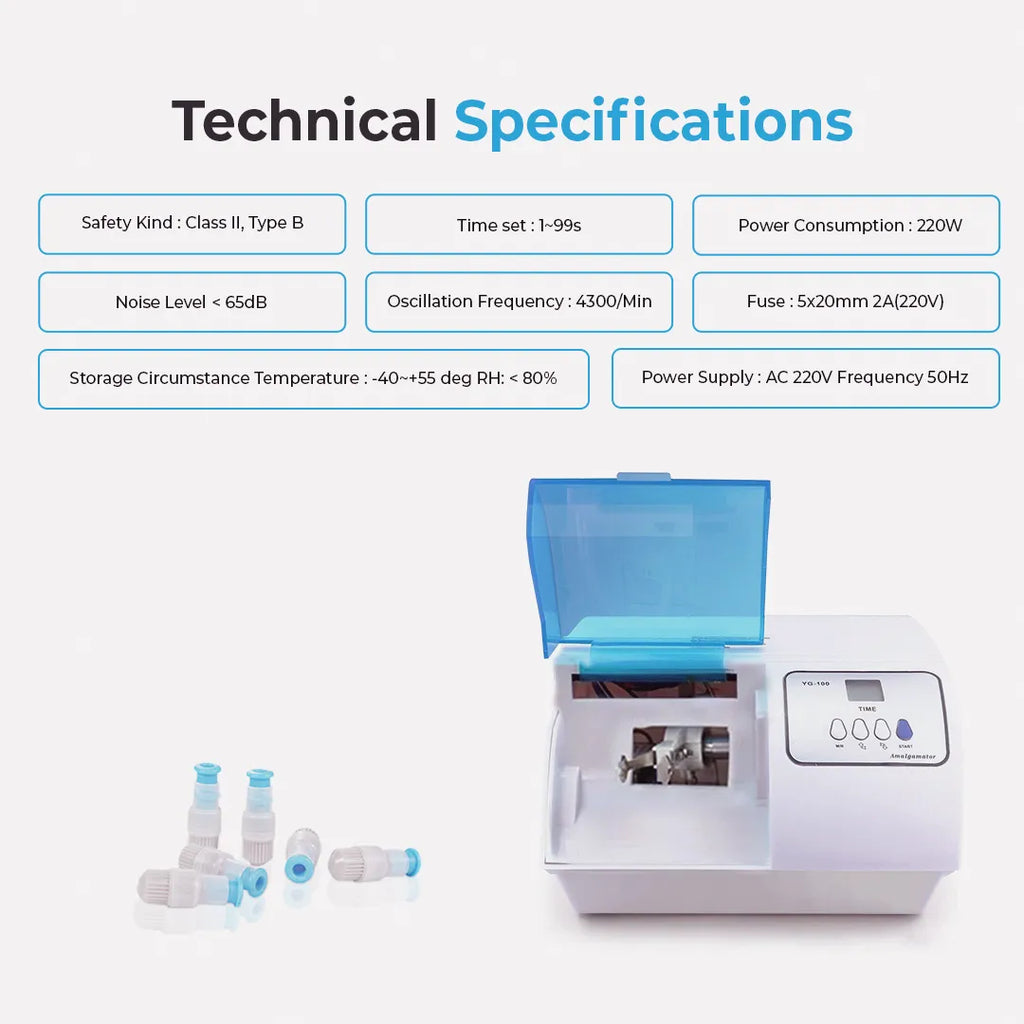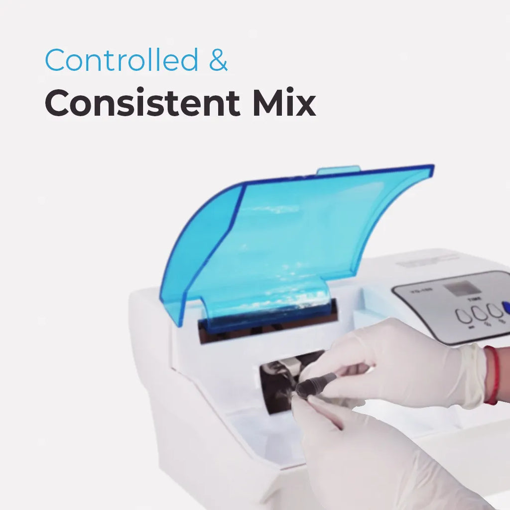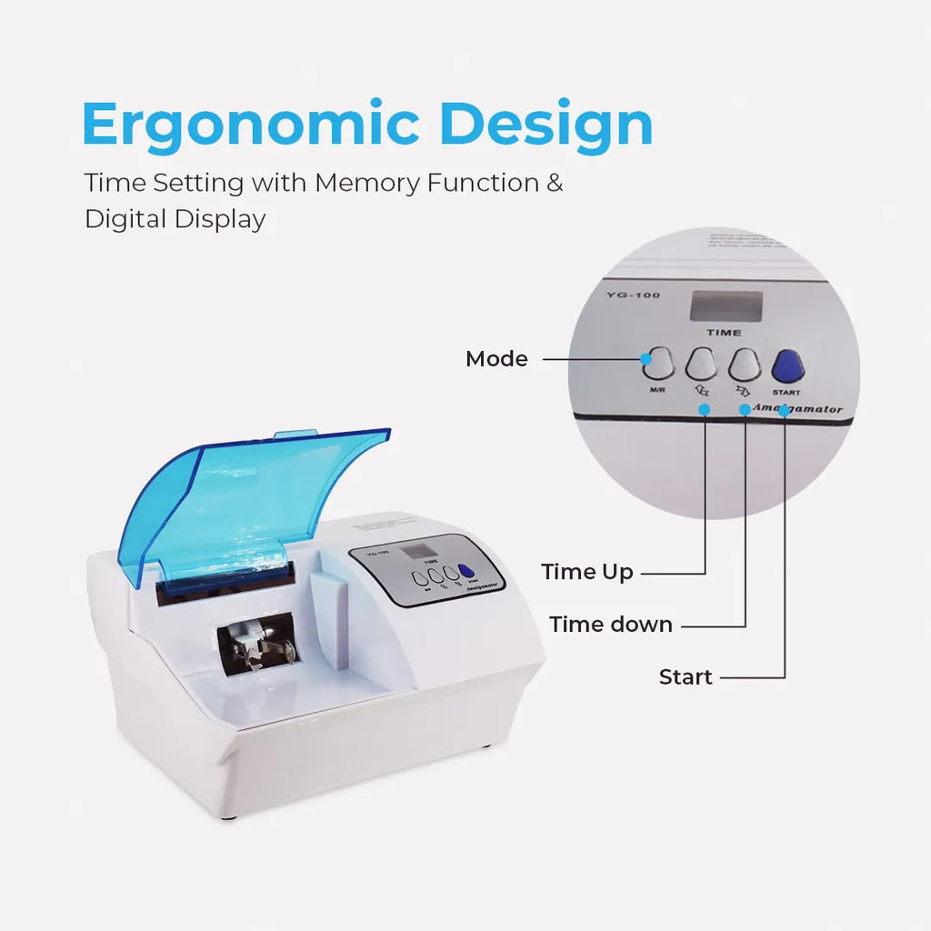 A dental amalgamator is used in the field of dentistry for the blending of restorative materials such as silver amalgam capsules and glass ionomer cement. This ensures a precise, controlled, and consistent mix.