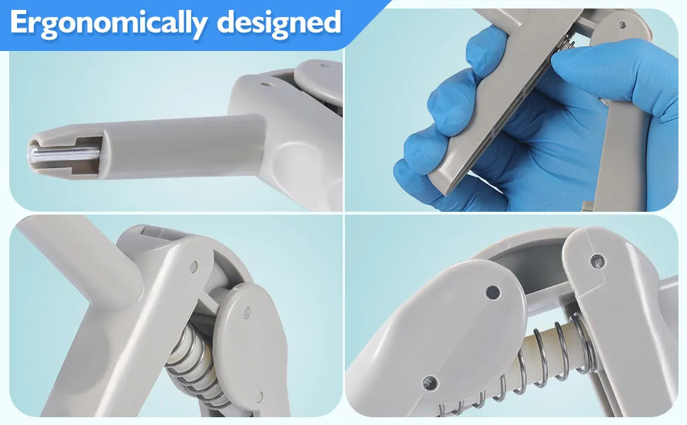 The composite dispensing gun is used to deliver the resin material to the dental cavity when it is used to fill the patient's teeth.