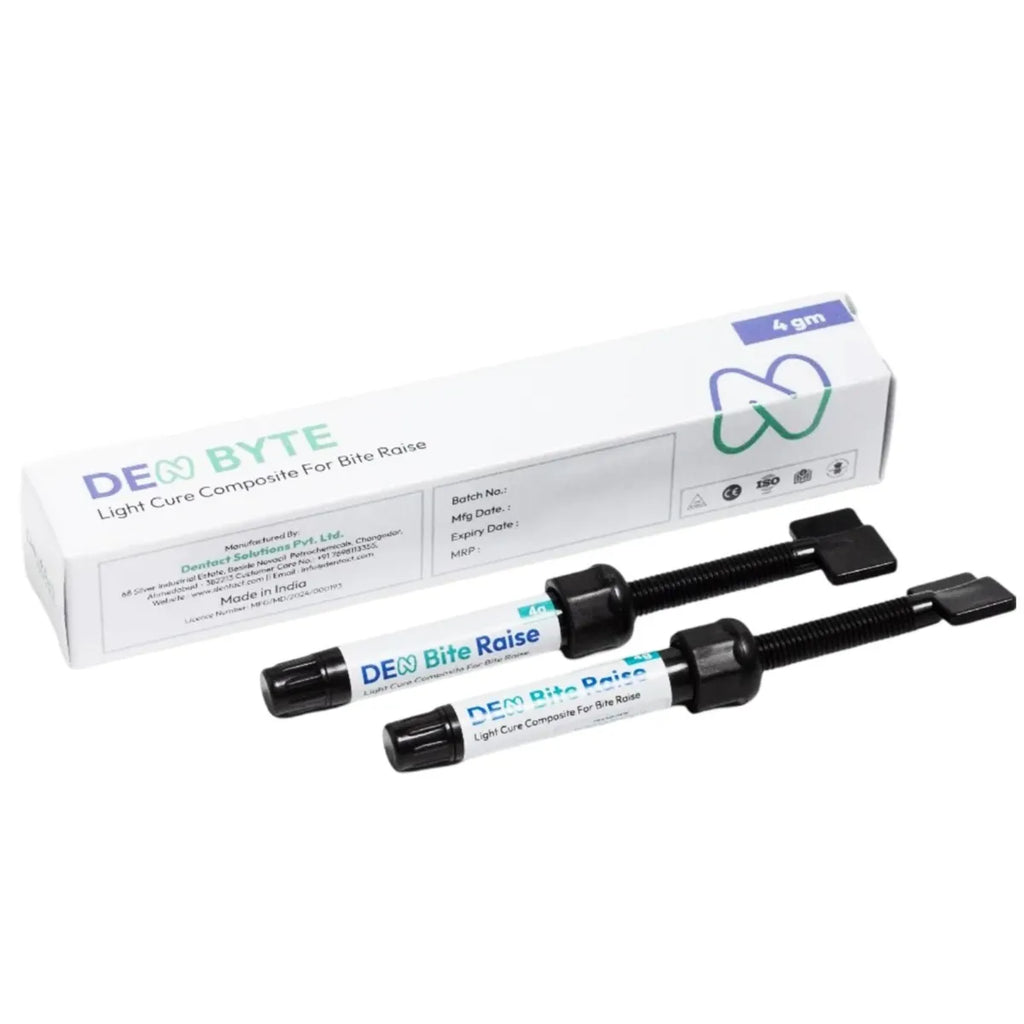 DentAct Den Byte is a high-quality, blue-colored packable composite designed to facilitate precise bite adjustments during orthodontic treatments. This advanced material effectively raises the bite with its stable and easily manipulated consistency, ensuring reliable occlusal changes and patient comfort. Den Byte stands out with its visible blue color, which contrasts well against tooth structure for improved visibility during application and removal. The composite features quick and reliable light-cure technology, allowing for rapid polymerization and robust durability. It is ideal for managing various orthodontic needs, including deep bite cases, crossbite management, and space creation for tooth movement. Den Byte also provides essential temporary occlusal support and is suitable for use with fixed and functional orthodontic appliances. The smooth, biocompatible finish enhances patient comfort by reducing irritation and preventing trauma to opposing teeth. For optimal results, the product is easy to apply and shape, ensuring a customizable fit that maintains occlusal stability throughout treatment. DentAct Den Byte is stored at room temperature and used with standard safety precautions, making it a reliable choice for effective bite management in orthodontics.