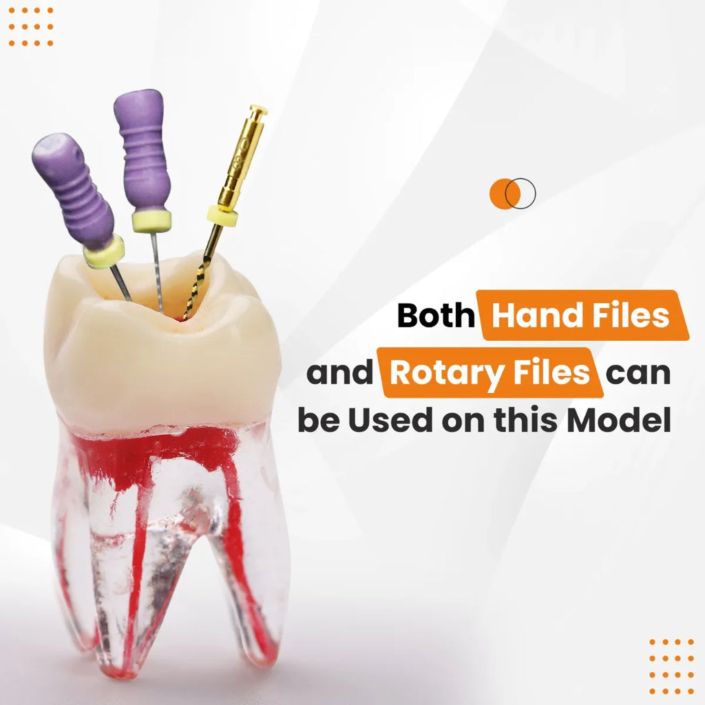Manufactured from material with physical properties comparable to a natural tooth, this tooth model can be an excellent educational tool for the preclinical students around the globe to learn how to correctly perform root canal treatments, prior to practicing on actual patients. The narrow root canals in certain models can assist the trainees in improving their skills for dealing with more complicated cases.