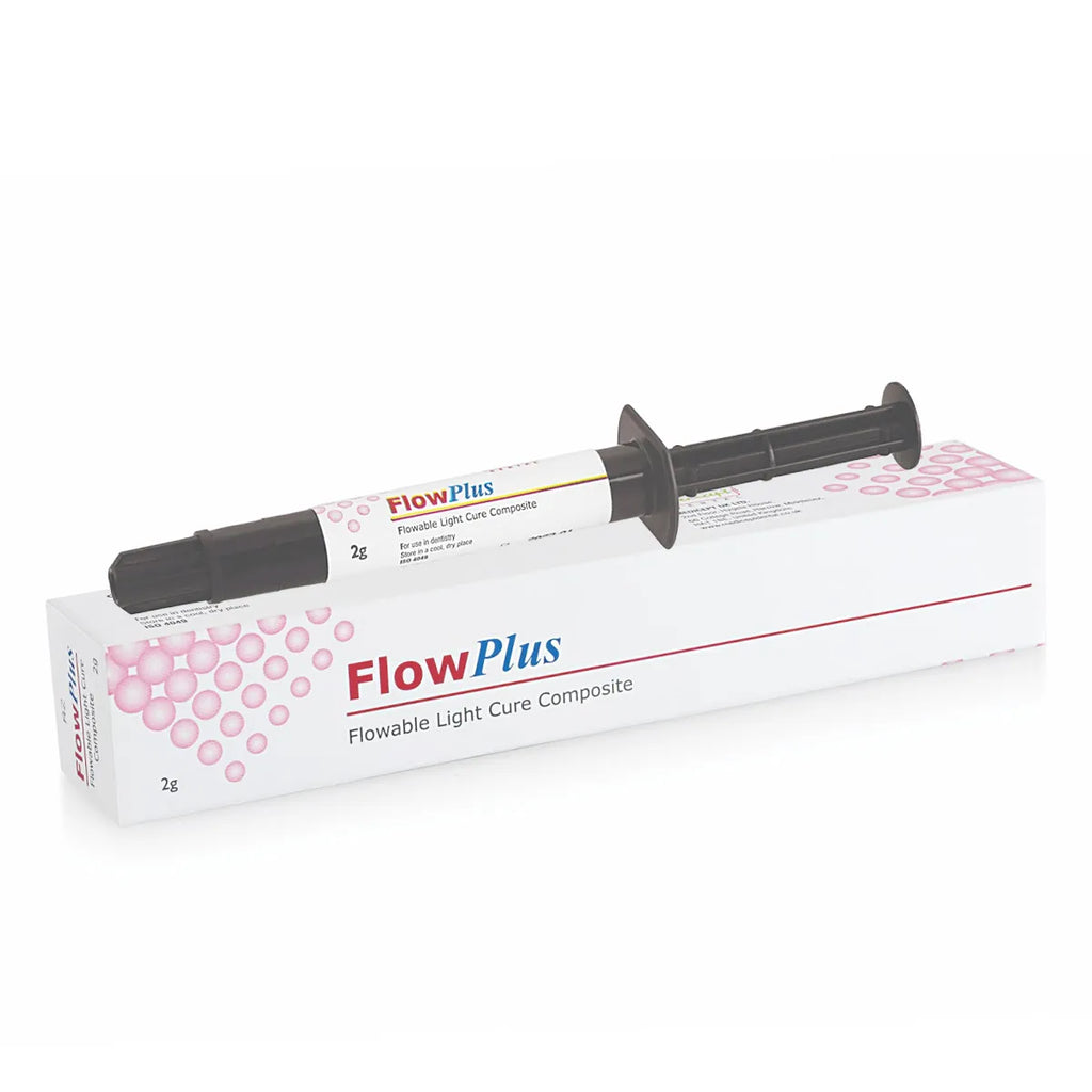 Medicept Dental Flow Plus is an advanced flowable, light-cure hybrid resin restorative that sets new standards in dental composite technology. Specifically designed for Class III, Class IV, and Class V restorations, Flow Plus offers exceptional versatility and performance. With its unique formulation, Flow Plus incorporates BIS-GMA chemistry combined with a proprietary glass filler, making it a flowable, non-slumping restorative material. This advanced particle technology provides several key advantages, including excellent wear resistance and superb aesthetics.