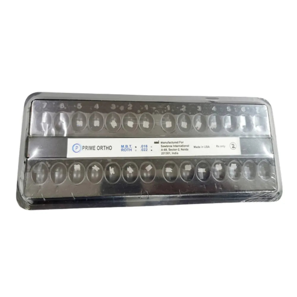 Prime Ortho Ceramic Bracket Kit MBT 022 represents a breakthrough in orthodontic technology, designed to deliver optimal performance while maintaining an aesthetic appeal. Crafted with precision and innovation, this kit combines the durability of ceramic material with the advanced MBT 022 prescription, ensuring efficient and effective orthodontic treatment. Each bracket within the kit is meticulously engineered to provide precise control over tooth movement, facilitating accurate alignment and bite correction.