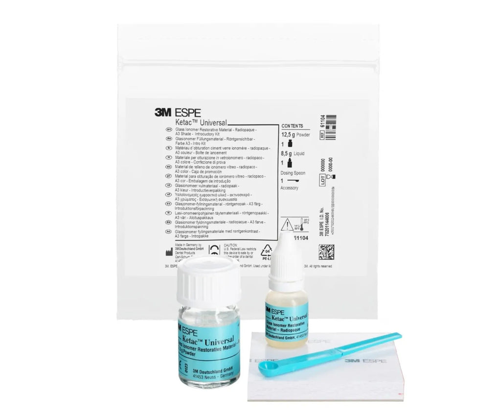 This versatile restorative material is suitable for a wide range of indications, making it a universal solution for dental practices. Whether it's used for fillings, restorations, or other dental procedures, Ketac Universal delivers consistent and reliable results.