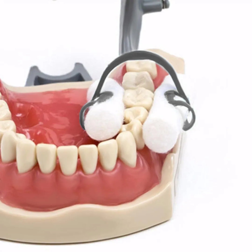 - Fixes the cotton rolls without restricting access or visibility