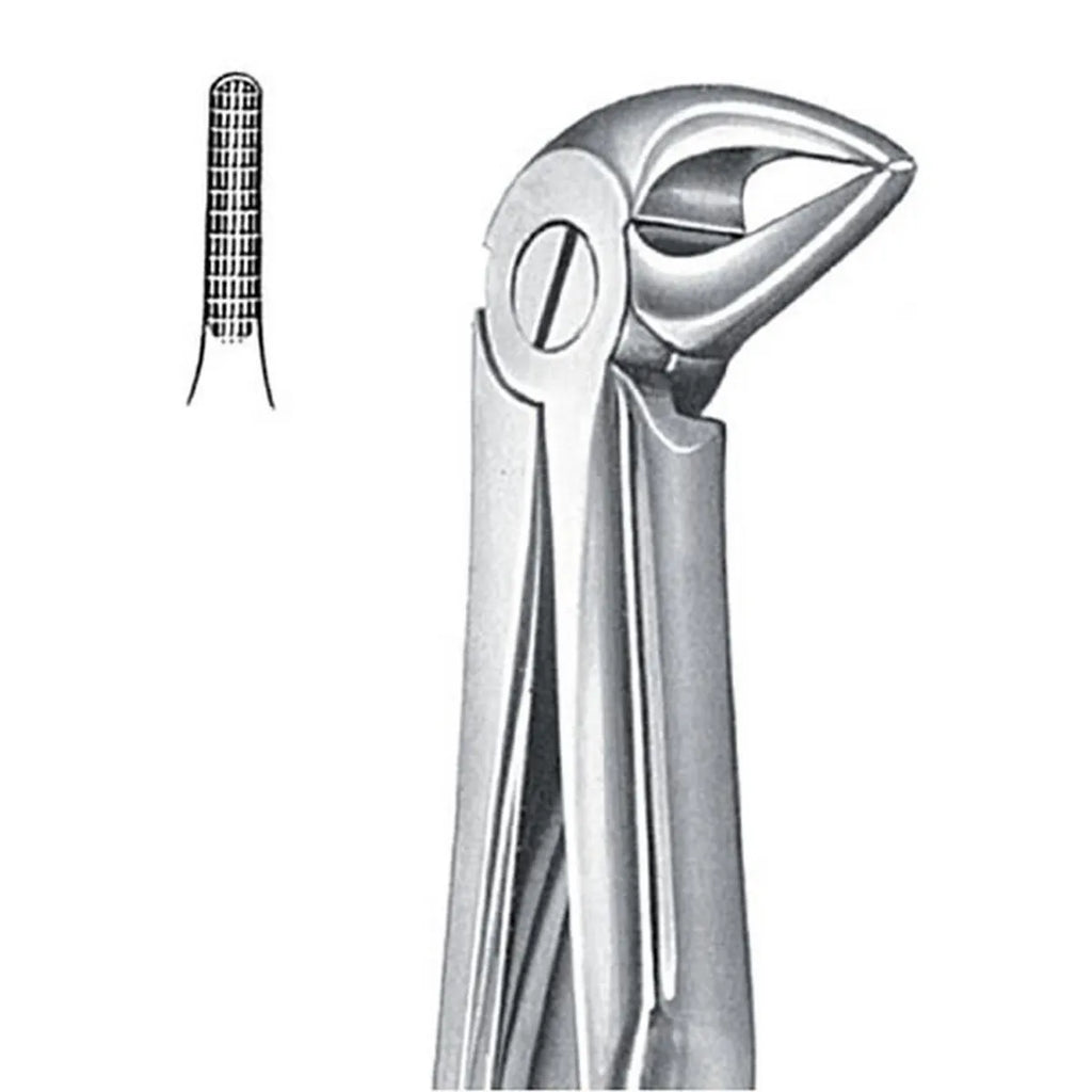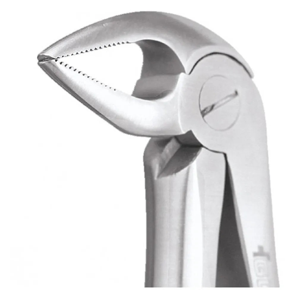 The GDC Extraction Forceps Lower Roots Premium - (FX33AP) are dental instruments designed for the precise extraction of lower root fragments. These forceps feature slender and tapered beaks that allow for accurate access to the fragments without causing damage to surrounding tissues. The length and angulation of the forceps are optimized to provide optimal reach and alignment during the extraction process. Equipped with a spring mechanism, the forceps offer controlled gripping force to securely grasp the fragments and minimize the risk of slippage