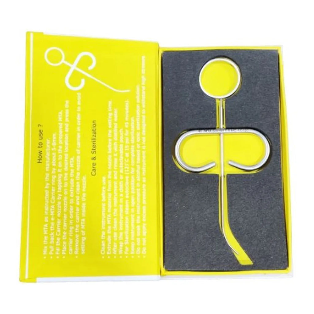 Carrier is a peculiar design made up of a surgical stainless alloy which will facilitate the use of MTA in surgical procedures like retro seal & treatment of perforation or stripping.