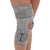 Knee support which offers the advantage of controlled compression around the knee and the rigid side support of a splint. It allows normal flexion and free movement of the knee joint.