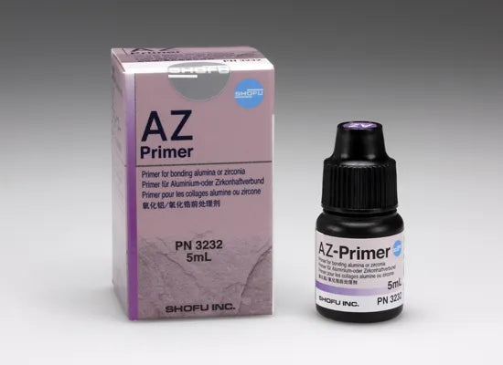 AZ Primer is a priming agent designed to treat the surfaces of alumina-based or zirconia-based restorations to enhance bond to resin materials. AZ Primer can be used intraorally and extraorally. A unique innovation specifically created to provide a stable and dependable bond with all-ceramic zirconia and alumina restorations. The novel 6-MPHA monomers in Shofu AZ Primer secure permanent anchorage to the all ceramic bonding surface and ensure long-term clinical success. The 6-MHPA monomer, specially adapted for high-performance porcelains, anchors itself permanently to the restoration and thus is superior to other bonding systems, especially “all-in-one” products. The primer can be applied intraorally and always ensures excellent bond strengths when used in combination with the light-cured opaque pastes of the SHOFU Universal Opaque system.