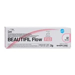 Shofu Beautifil Flow F02 is created to offer moderate flow while retaining the shape, especially for restoring cervical areas and for minimally invasive restorations. Excellent aesthetics with good translucency and high surface polish, ideal for cosmetic touch up and surface modifications of aesthetically demanding cases. Fluoride release and recharge is advantageous when using as a base in conjunction with Beautifil II and the unique anti-plaque effect helps when treating patients with poor oral hygiene. Radiopaque with high elasticity and stable stress relaxation, syringe design; dispense on demand with no oozing of excess paste and 360° rotary finger grip for efficiency of application even in hard to reach areas.