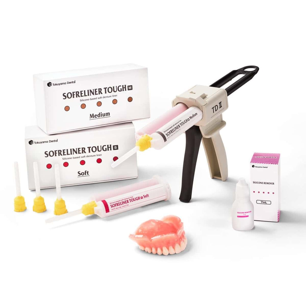 Sofreliner Tough is a multi-award, self-cure chairside soft denture reline material, providing patient comfort and satisfaction up to two years in one short, simple application. Sofreliner Tough is suitable for relining upper, lower, partial or full dentures, as well as those that need relief for irritated tissues after surgery, teeth extraction, or implant procedures.