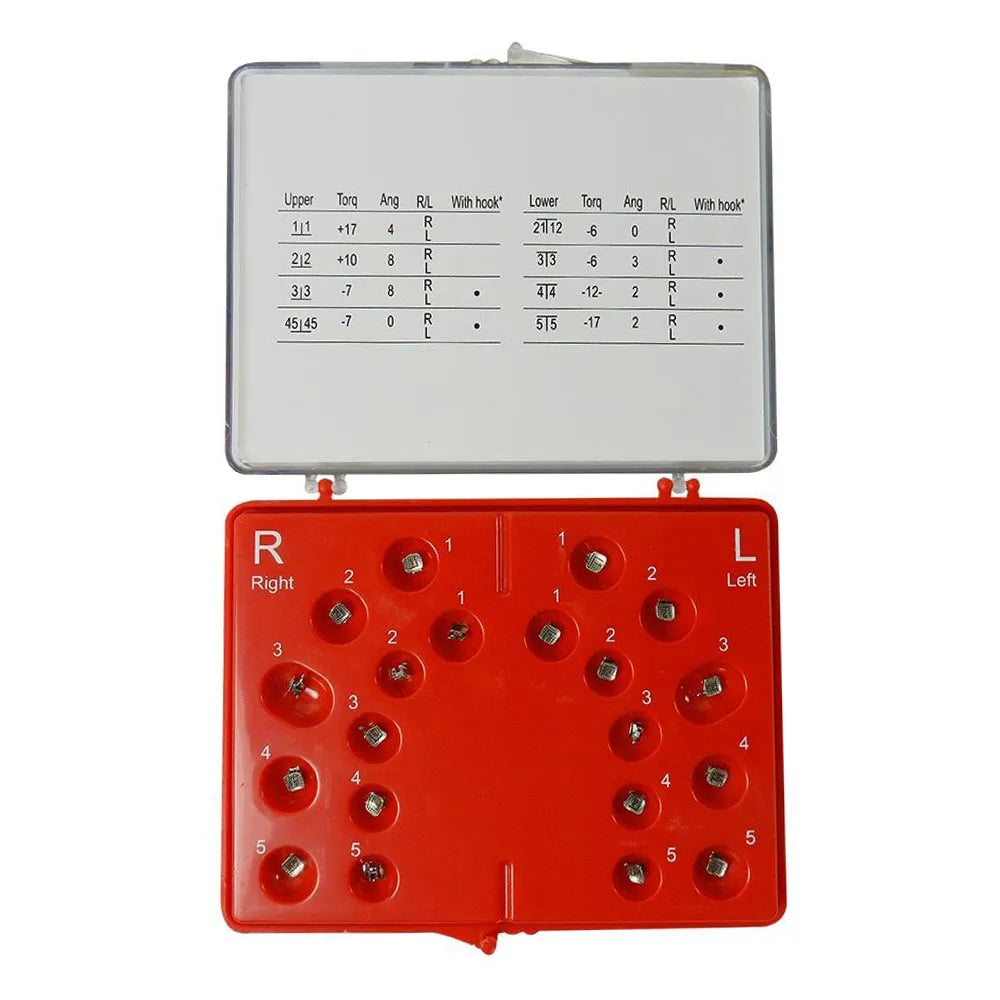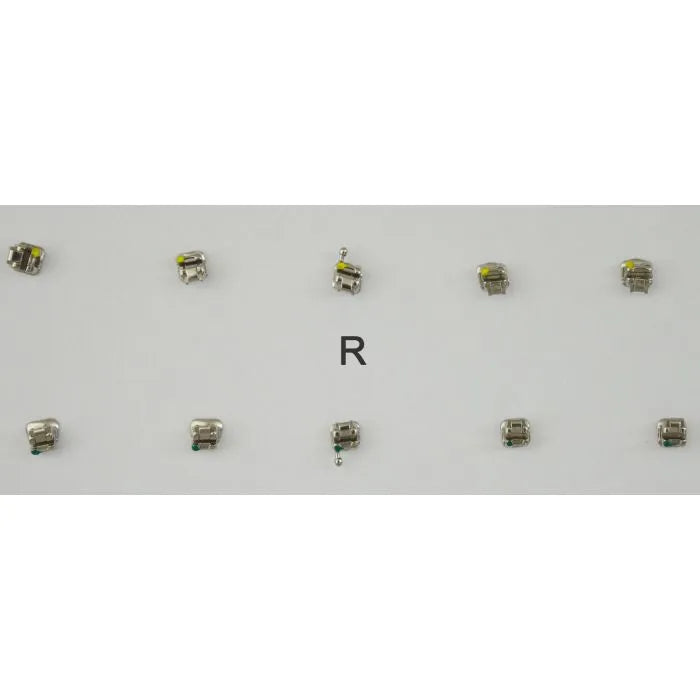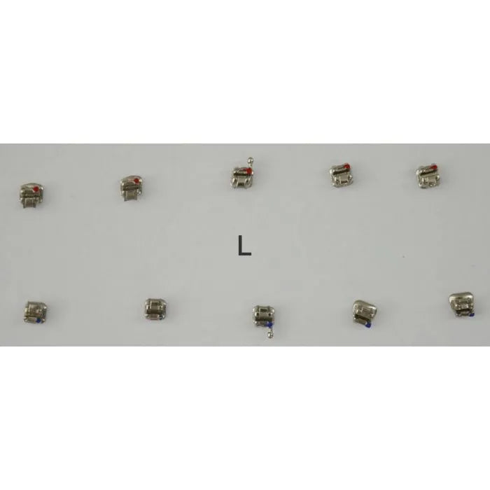 Self-Ligating MBT Bracket Kit .022 is a comprehensive orthodontic solution designed to streamline procedures and improve patient comfort. With a passive self-ligating design, these brackets eliminate the need for ligatures, reducing chair time and enhancing efficiency. The main slot size of 0.022x0.028 and accessory round slots of 0.014 offer versatility in treatment options, catering to different orthodontic needs. Featuring hooks on 3, 4, and 5, these brackets provide additional functionality for various treatment protocols. The kit includes a full set of brackets for both arches, ensuring consistency and compatibility throughout treatment. With their meticulous engineering and comfortable fit, the Accel Passive Self-Ligating MBT Bracket Kit .022 is designed to optimize clinical outcomes and patient satisfaction in orthodontic practices.
