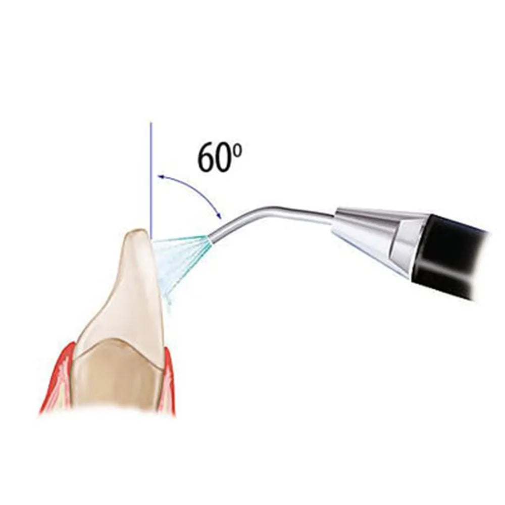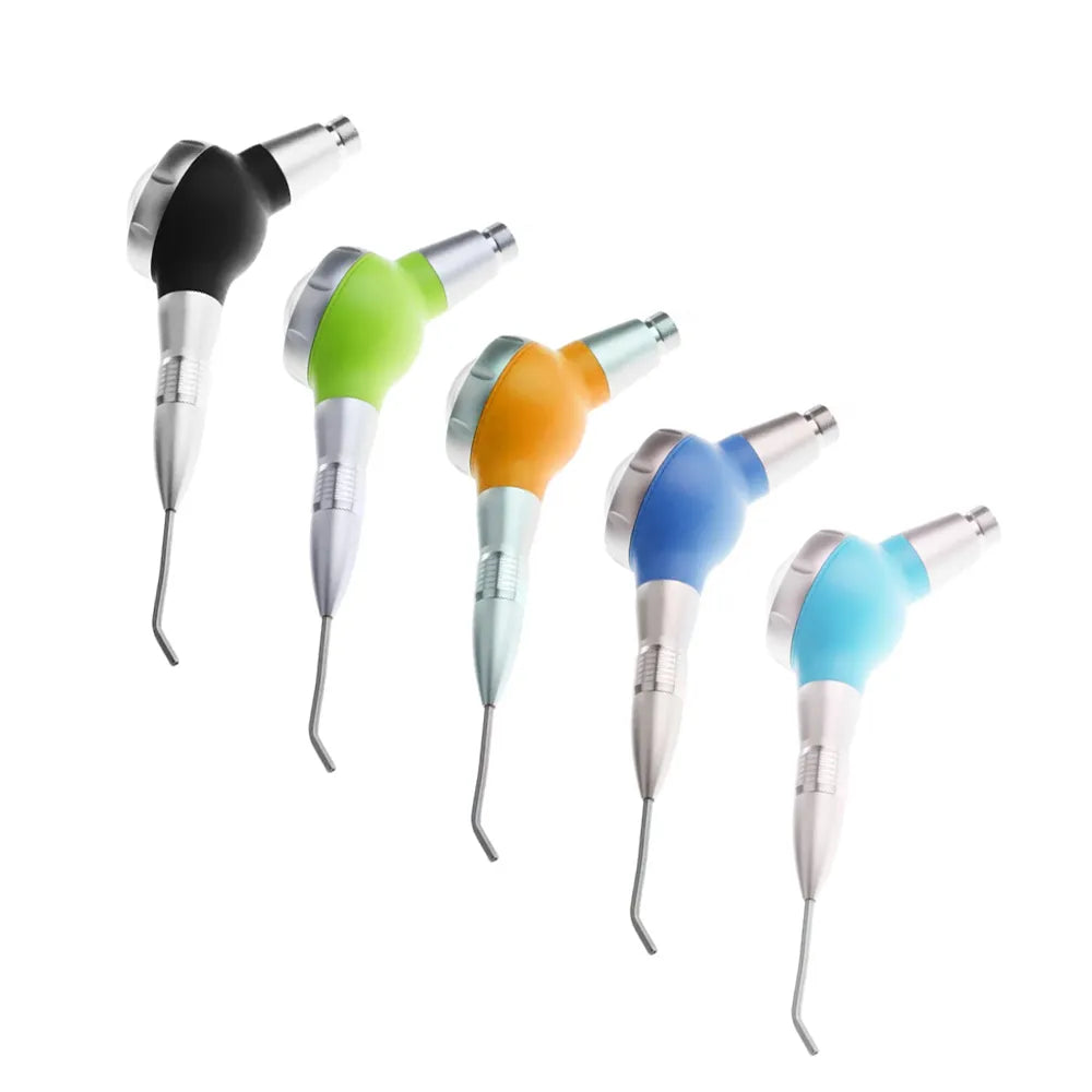 EndoKing Prophyshine Air polisher with attractive design allows for dexterous handling manipulation. Small and handy, compatible will all 2-hole turbine units. 360º rotation assures effective hidden tartar removal. It disperses evenly with no splashing. This product is designed especially to prevent backflow and blockage.