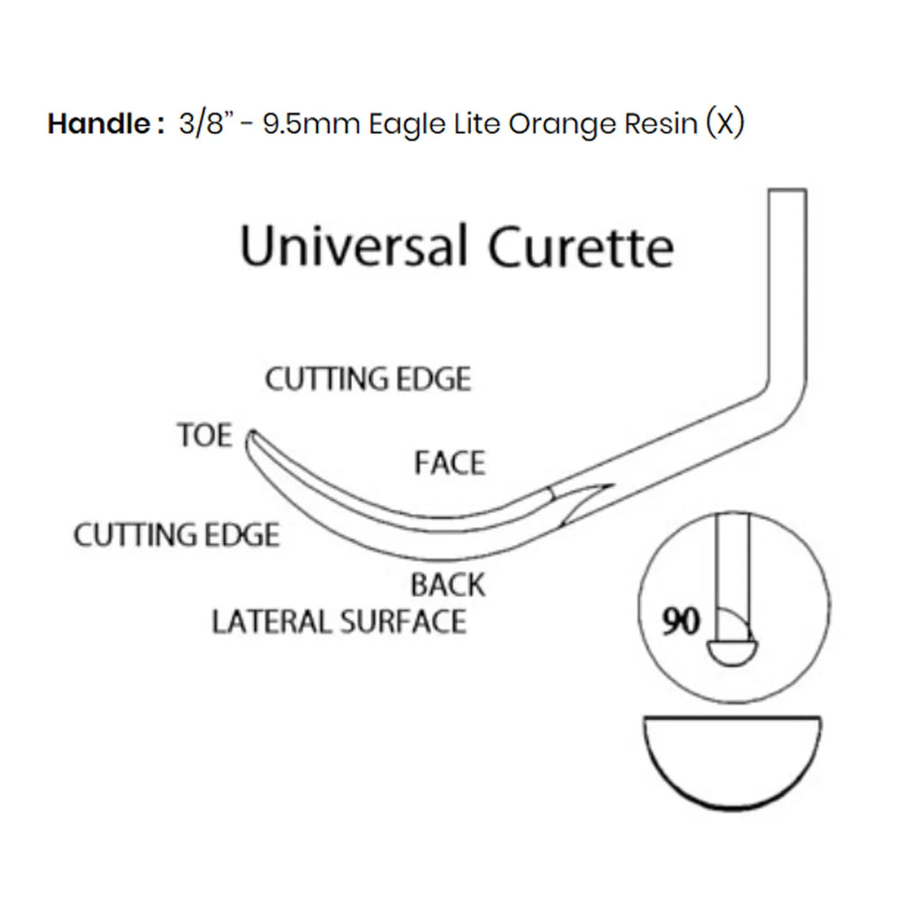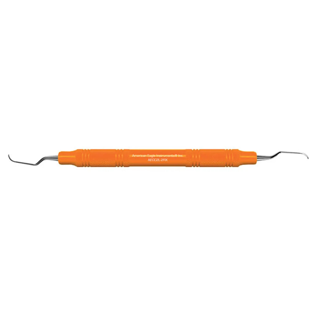 American Eagle Universal Curettes Columbia 2L-2R with an Orange Resin Handle, meticulously crafted to facilitate precise access to anterior teeth deposits. Boasting a longer shank and a shorter, robust blade, this instrument is adept at tackling heavier anterior deposits with ease. Constructed from resilient stainless steel, it ensures durability and longevity, promising enduring performance for dental professionals. The distinctive orange resin handle not only adds a pop of color but also offers an ergonomic design, ensuring a comfortable and secure grip throughout procedures. Engineered with Talon Tough Stainless Steel, this instrument embodies strength and resilience, making it a trusted companion in dental care. Elevate your dental practice with the American Eagle Universal Curettes Columbia 2L-2R, a fusion of precision, durability, and ergonomic excellence.