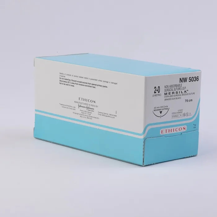 Ethicon Mersilk #2-0 Black Braided Suture is a cutting-edge medical-grade surgical thread highly regarded in the medical community for its exceptional performance and reliability. Designed specifically to meet the demanding needs of surgeons, this suture offers unparalleled advantages during various surgical procedures. One of the key features that set the Mersilk #2-0 Black Braided Suture apart is its distinctive black color. This unique coloration enhances visibility against tissue during surgery, allowing surgeons to make precise and accurate sutures even in challenging anatomical areas. The improved visibility aids in reducing the risk of errors and ensures optimal wound closure, ultimately promoting better patient outcomes. Crafted from high-quality materials, this suture guarantees excellent tensile strength and knot security. The solid and secure knots provide added assurance during suturing, reducing the likelihood of postoperative complications and potential wound dehiscence. Surgeons can rely on the Mersilk #2-0 Black Braided Suture to withstand tension and pressure, even in high-stress areas, ensuring a reliable and durable wound closure.