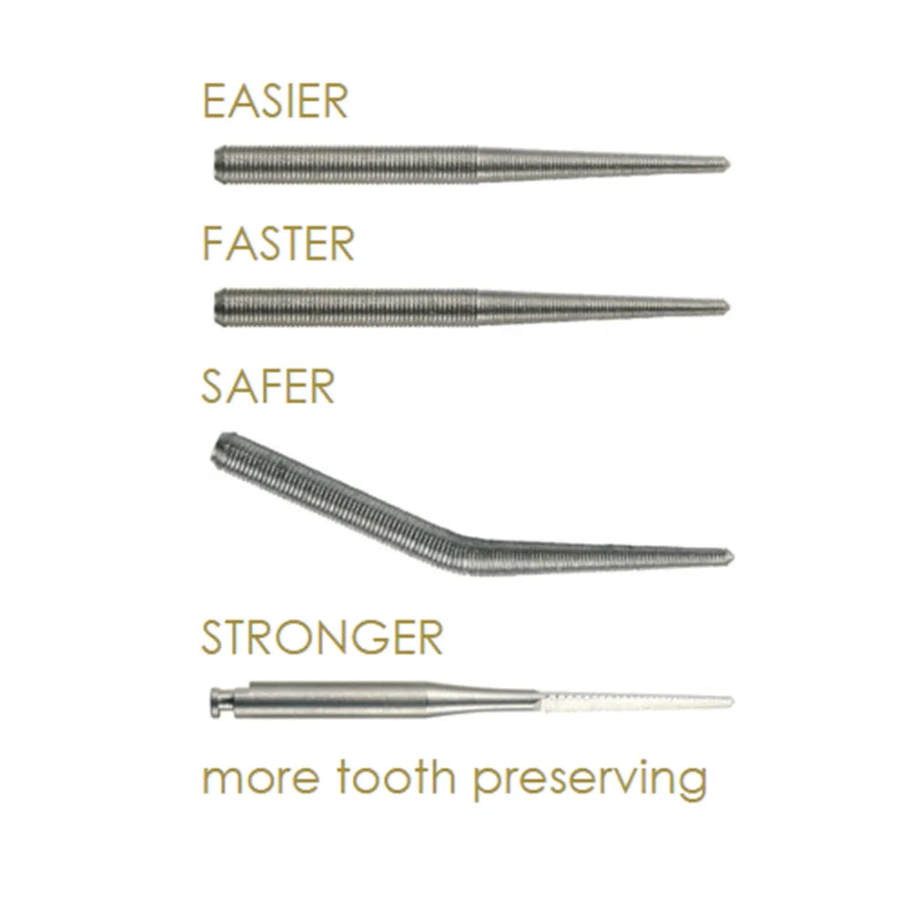 FILPOST has been design engineered to be faster and easier to place even in difficult cases, safer to place by reducing the risk of tooth cracking, crazing and root canal damage, more preserving of healthy tooth structure, and stronger in use via its unique passive 'interlocking' system.