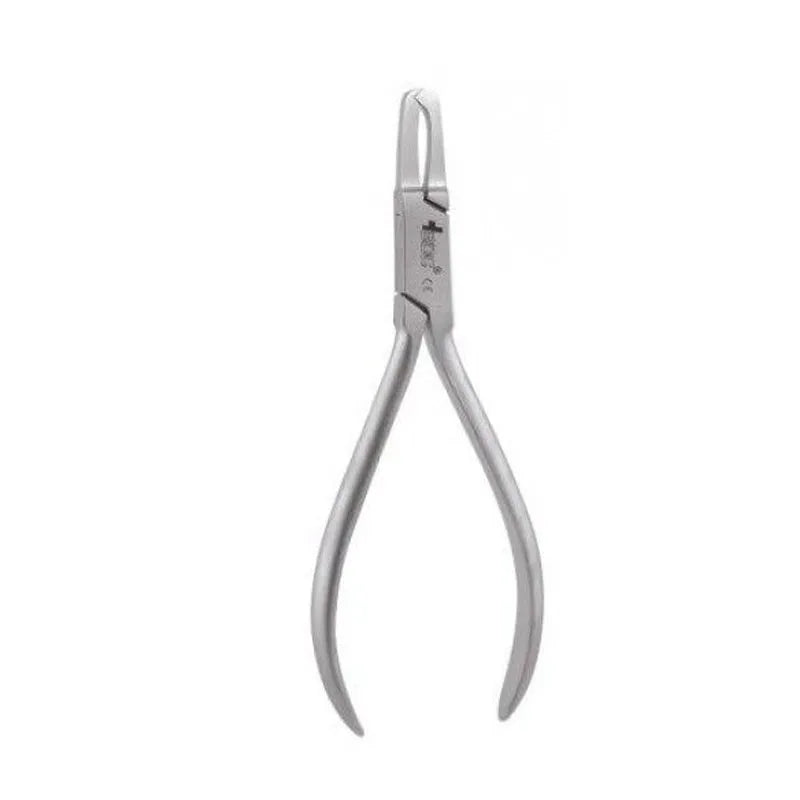 It is used for removing anterior bands. Also Useful for removing bonding material on the tooth surface after debonding. The alignment of the tip and occlusal pad is well-suited for band removal. Band-removing orthodontic pliers help remove bands, brackets, and adhesives. Construction material is high-grade stainless steel or steel with a chromium and carbon blend. The tip or beak of the band removing orthodontic pliers may be serrated or specially formatted for precision gripping. There may be a replaceable plastic pad on the end of the tip for proper occlusal counterforce.