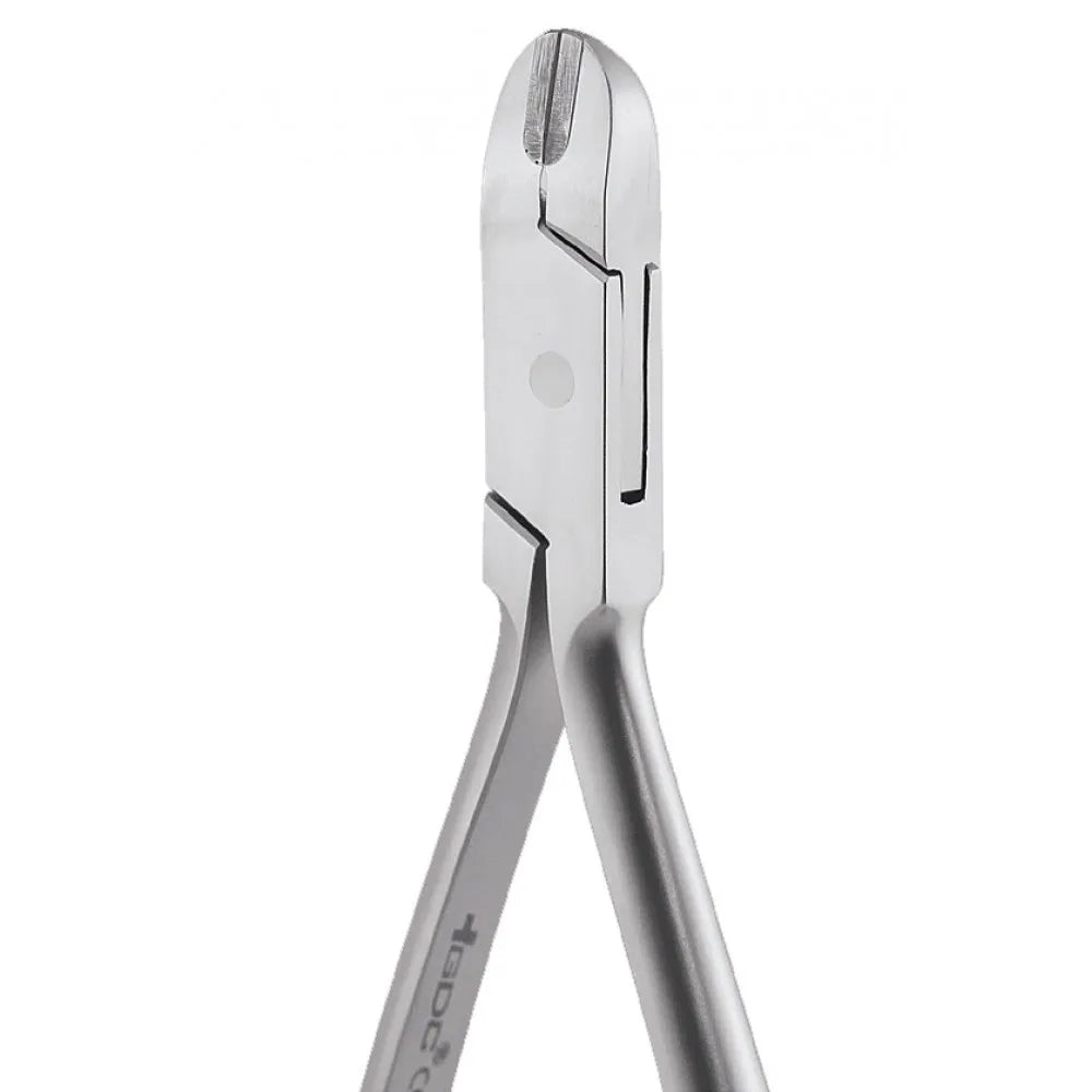 It is used to trim hard orthodontic wires to the proper length for use in creating orthodontic appliances. The tip is having tungsten carbide metal in order to stand up to and push through the hard wires they cut.