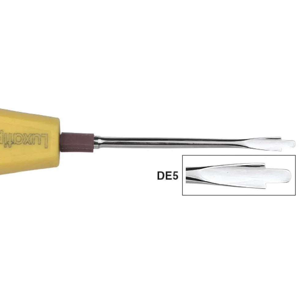 The GDC Luxatip - Dual Edge 5mm + 3mm (DE5) is a versatile dental instrument designed for atraumatic tooth extraction procedures. Its dual-edge design, with 5mm and 3mm edges, offers dental professionals adaptability in extracting a wide range of tooth sizes. This instrument is constructed from high-quality stainless steel, ensuring durability and corrosion resistance. The ergonomic handle provides a comfortable grip, enhancing precise control during extractions. DE5 Luxatip facilitates atraumatic extractions, minimizing tissue damage and promoting faster post-operative healing. With its broad range of applications, it is an indispensable tool for dental professionals across various specialties, including oral surgery, periodontics, and endodontics.
