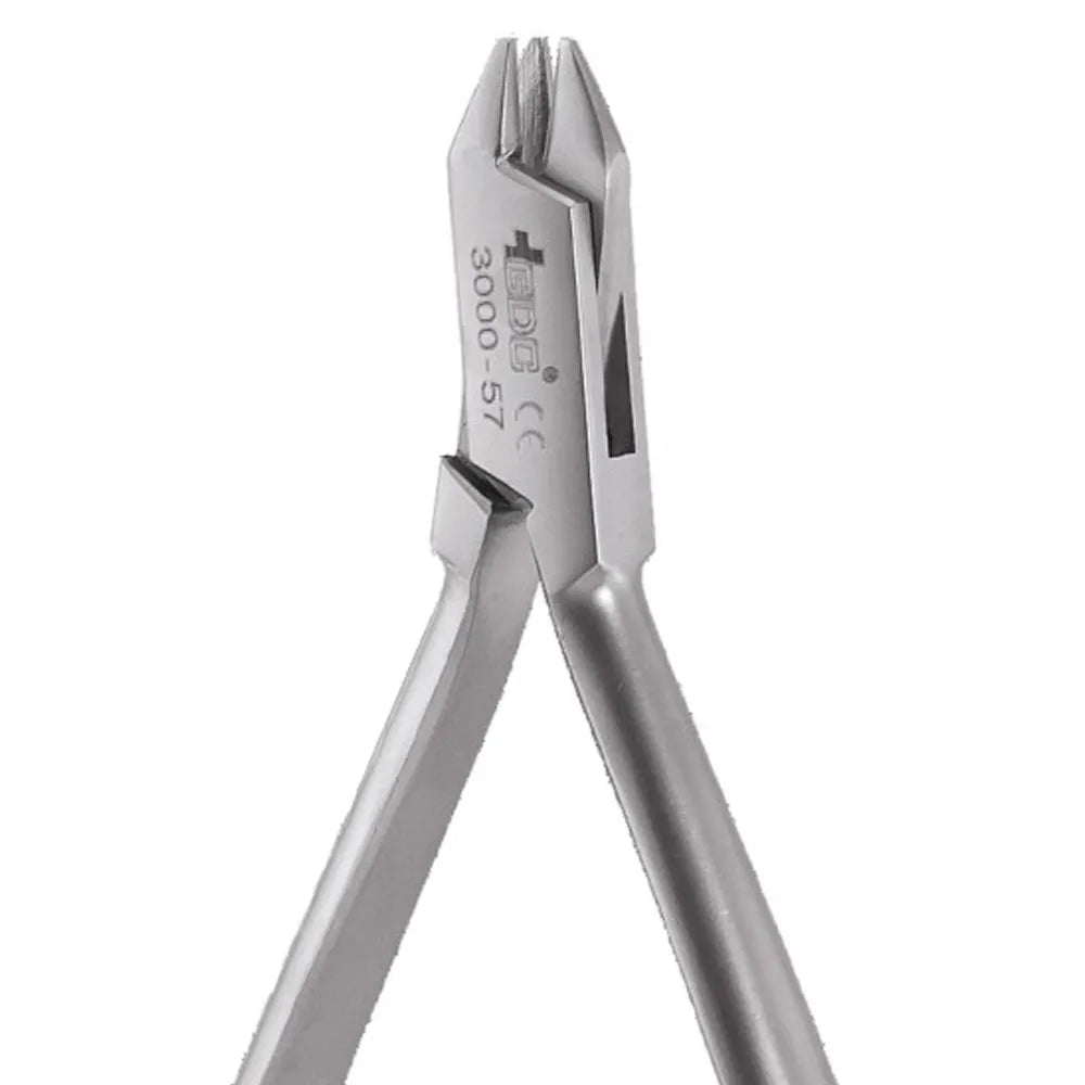 Precision tips for accurate wire and clasp adjusting and contouring are useful for bending orthopedic appliances. The double tip should feature one-piece construction to eliminate flaring & prevention wire scoring. Three-pronged pliers most often have a box-style joint for durability and accurate force. They are constructed from surgical-grade stainless steel for corrosion resistance and strength and are fully autoclavable.