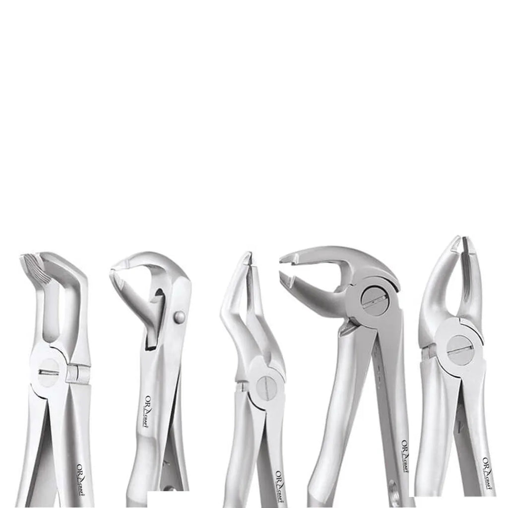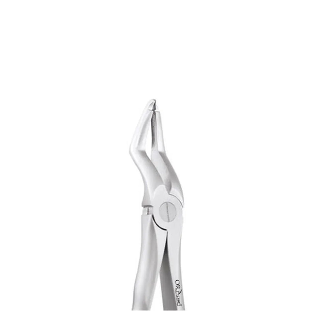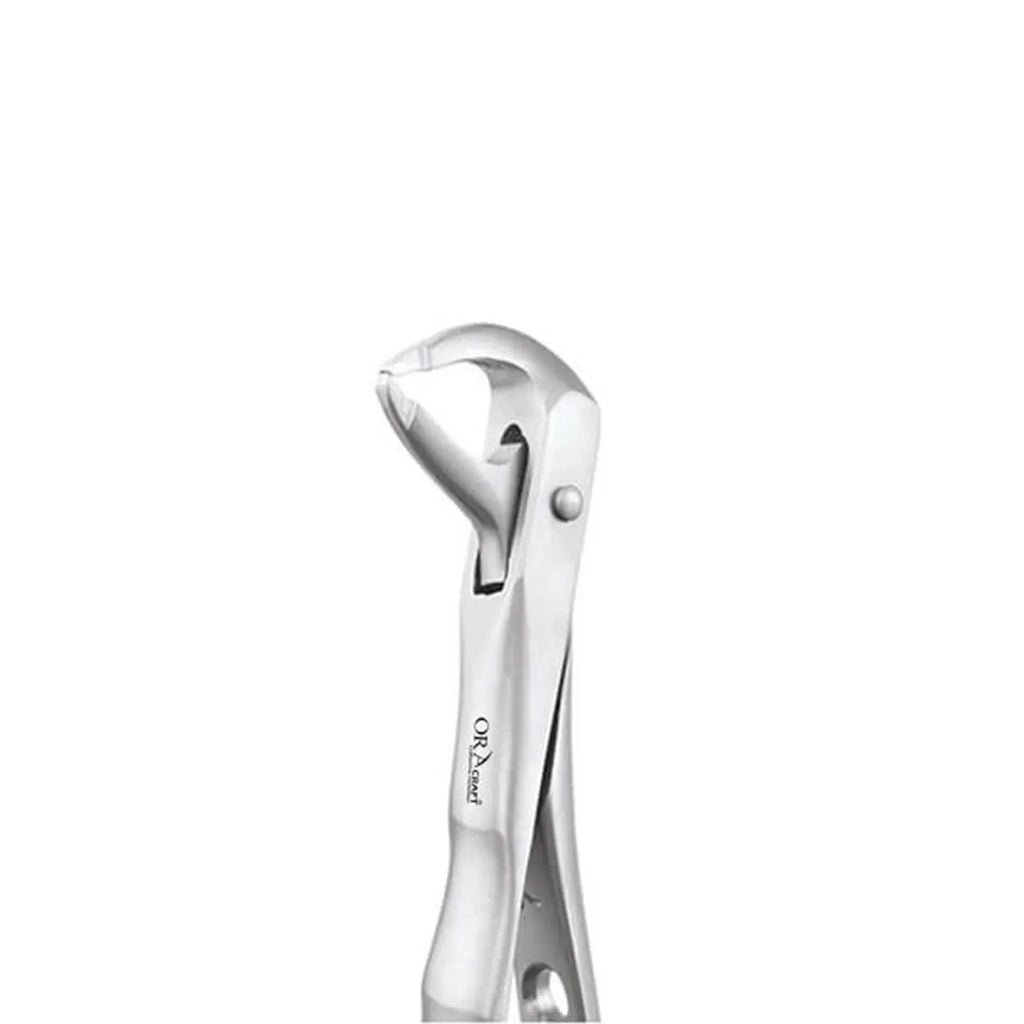 Oracraft Atraumatic Extraction Forceps are expertly crafted from high-quality stainless steel, ensuring exceptional durability and precision for dental professionals. These forceps feature "Blade Beaks" that smoothly penetrate upon contact with the root, providing a large contact surface for a secure grip. Designed for atraumatic procedures, they ensure minimal damage to the surrounding tissues, preserving bone integrity and promoting faster healing. The parallel grasp design on the neck of the tooth allows the forceps to reach deep into the alveolar region, providing a secure hold and enhancing control during tooth extraction. This design is particularly beneficial for complex extractions, offering both efficiency and safety. The ergonomic handle ensures comfort and reduces hand fatigue during prolonged use. With Oracraft Atraumatic Extraction Forceps, dental practitioners can achieve precise and effective extractions, improving patient outcomes and procedural success.