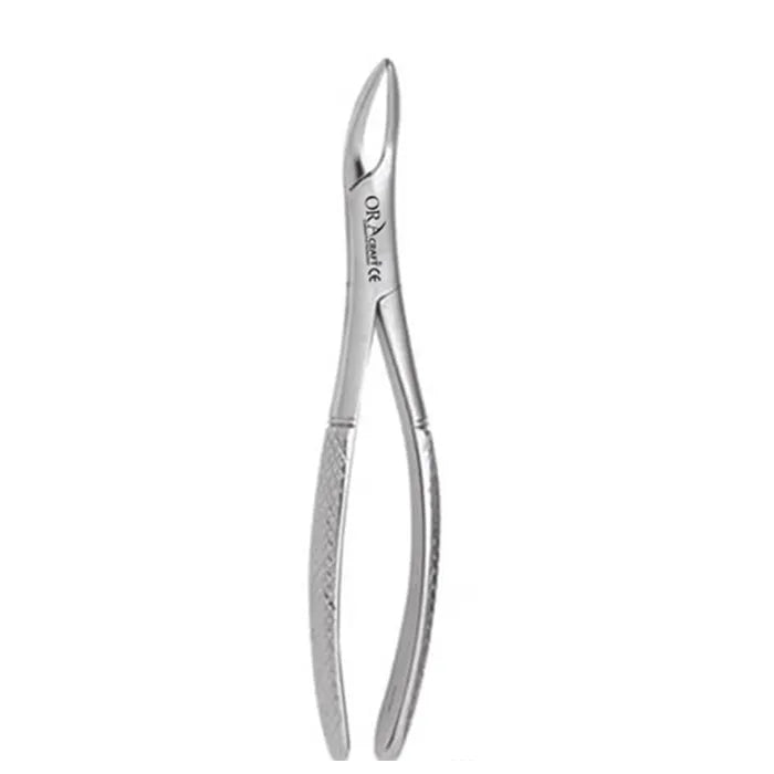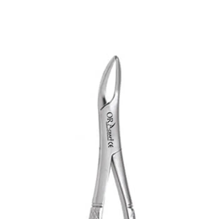 Oracraft Universal Forcep for Upper Roots (FX221) is a precision-crafted dental instrument designed specifically for the extraction of upper teeth, focusing on the removal of upper roots from the dental alveolus (socket) within the alveolar bone. Engineered with meticulous attention to detail, this forcep features an ergonomic design that ensures optimal grip and control during extractions, minimizing trauma to surrounding tissues while effectively extracting targeted tooth roots. Its versatile beak design allows for adaptation to a wide range of upper tooth shapes and sizes, making it suitable for various dental procedures. Constructed from high-quality stainless steel, the FX221 offers durability, corrosion resistance, and ease of sterilization, ensuring reliable performance in dental practices. Whether utilized in routine extractions, orthodontic treatments, or trauma cases, the Oracraft Universal Forcep for Upper Roots (FX221) exemplifies precision and reliability in dental instrumentation.