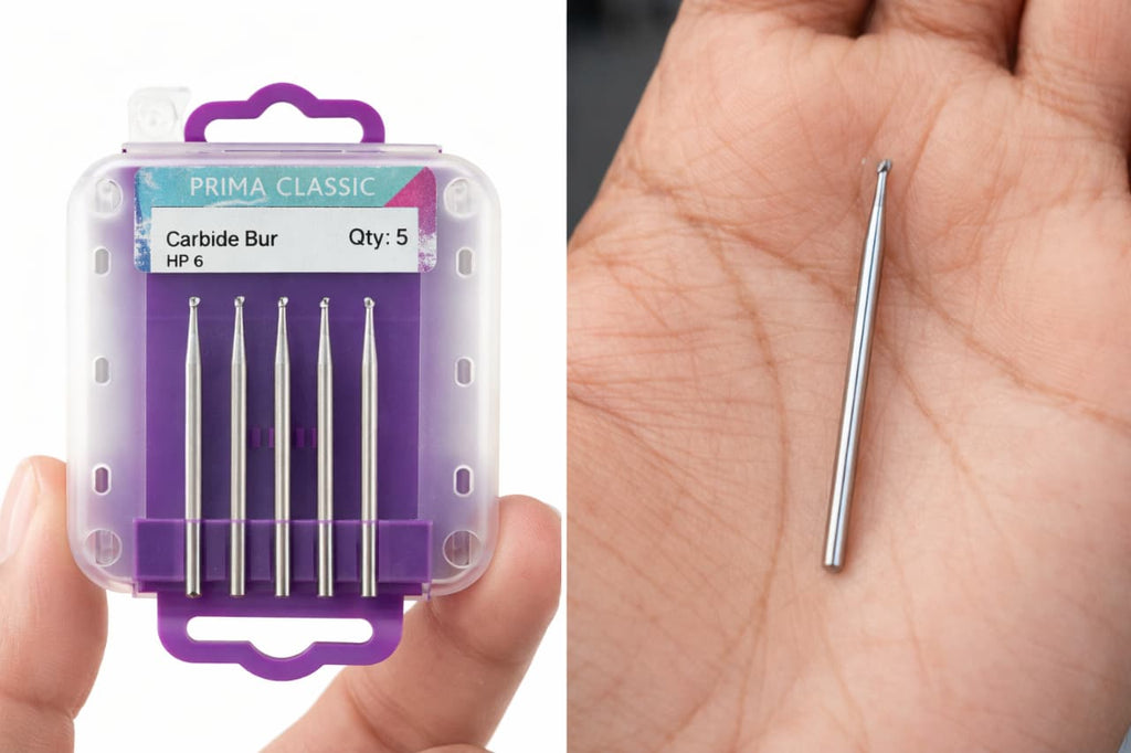 Prima Dental Round Bur (Carbide) #2-HP is a precision rotary cutting instrument designed for efficient caries removal and root canal access preparation. Made from premium tungsten carbide, this bur offers excellent cutting efficiency, durability, and long service life.