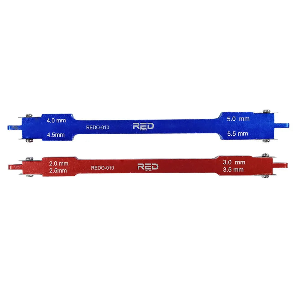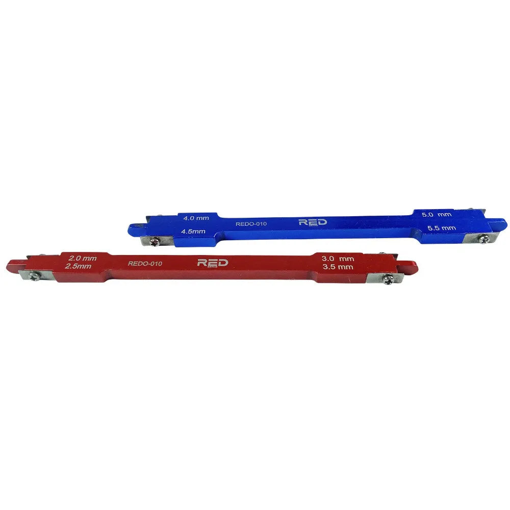 The Red Ortho MBT Bracket Gauge 022 is an essential tool for orthodontic professionals, designed for precise bracket placement and alignment. Crafted from high-quality anodized aluminum and stainless steel, this gauge ensures durability and accuracy in orthodontic procedures. Its autoclavable nature allows for safe and efficient sterilization, promoting infection control protocols in clinical settings.Specifically tailored for .022 slot brackets, this gauge facilitates accurate bracket positioning, ensuring optimal treatment outcomes for patients. With its user-friendly design and reliable performance, orthodontists can confidently rely on this gauge for consistent and precise bracket placement, streamlining their workflow and enhancing patient care.