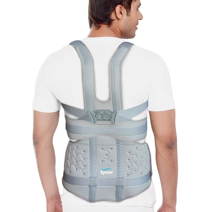 Spinal brace to providing full support and comprehensive coverage to thoracic-lumbar-sacral spinal sections. The brace immobilizes the spine in neutral position, still permitting the requisite body movement for normal activity while keeping the weak spine structure protected and in correct posture.